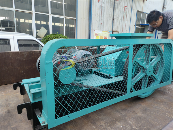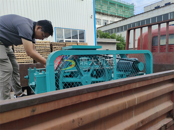 生石灰用雙齒輥破碎機破碎試機現(xiàn)場